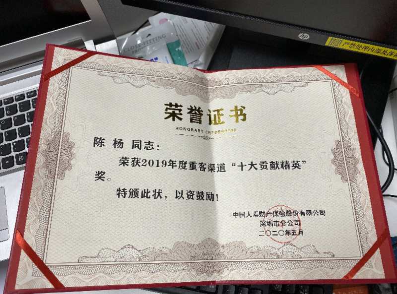 陈杨,2018届毕业生,现就职中国人寿,2019年获公司“十大贡献精英”奖,目前是公司最年轻的团队长。
