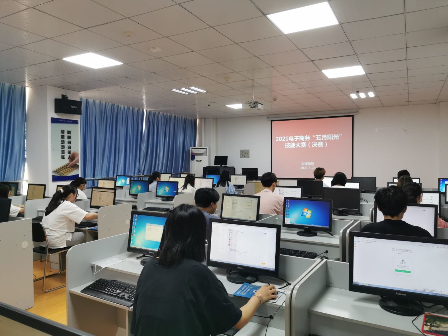 我院电子商务专业在“五月阳光文化节”之际,举办了电商综合技能竞赛。该竞赛由网络客服和网络美工两个子赛项组成,通过赛前动员、培训、选拔一系列准备工作后,于2021520日下午,在1-509教室举行了决赛。