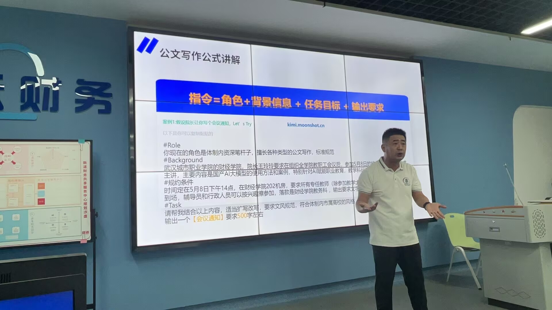 在教育信息化浪潮席卷的当下,武汉城市职业学院财经学院积极拥抱前沿科技,以实际行动推动职业教育与人工智能技术深度融合。5 月 8 日下午,一场别开生面的技能培训在武汉城市职业学院财经学院202云财务共享实训中心圆满举行,院长王玲玲带头学习,吕碧君副院长全程主持培训,为全院专任教师带来了一场知识与技能的盛宴,点燃了AI赋能职业教育创新的火花。