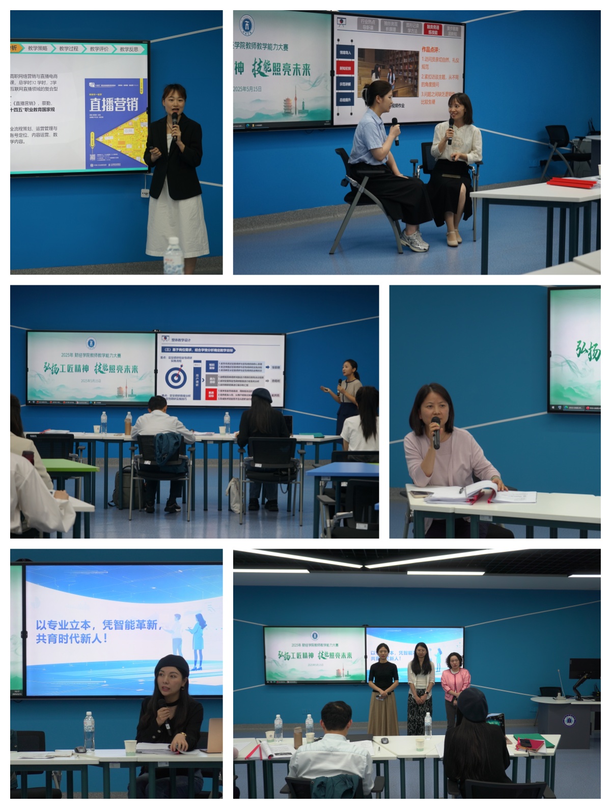 赛事现场亮点纷呈,其中《直播运营》课程团队尤为引人注目。钱莹、李贤灏两位入职未满一年的新教师,以“直播策划与执行管理”为参赛模块,生动展示了新媒体营销课堂的创新实践,彰显了新生代教师的专业潜力与教学热情。