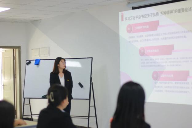 宣传委员明萌萌带领学习习近平总书记在上海考察时勉励青年一代,为青年鼓劲加油的重要讲话精神。