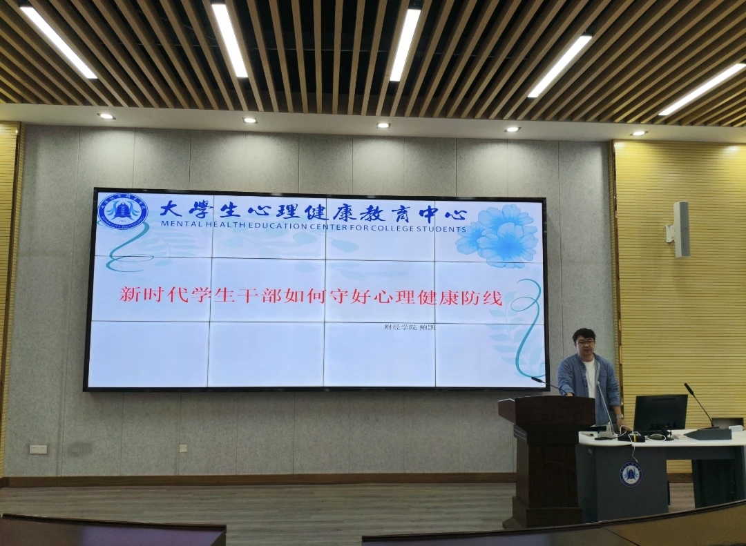 在第二讲中,鲍凯老师以“新时代学生干部如何守好心理健康防线” 为主题,重点传授了如何识别和解决一般性心理问题,学习进行自我调适及有效支持同学的方法与技巧。讲解中直面学生干部在学业、工作和人际关系中面临的实际压力,鲍老师强调,学生干部需主动构筑心理防线,完成从“自助”到“助人”的转变,共同建设校园心理健康,同学们都受益匪浅。