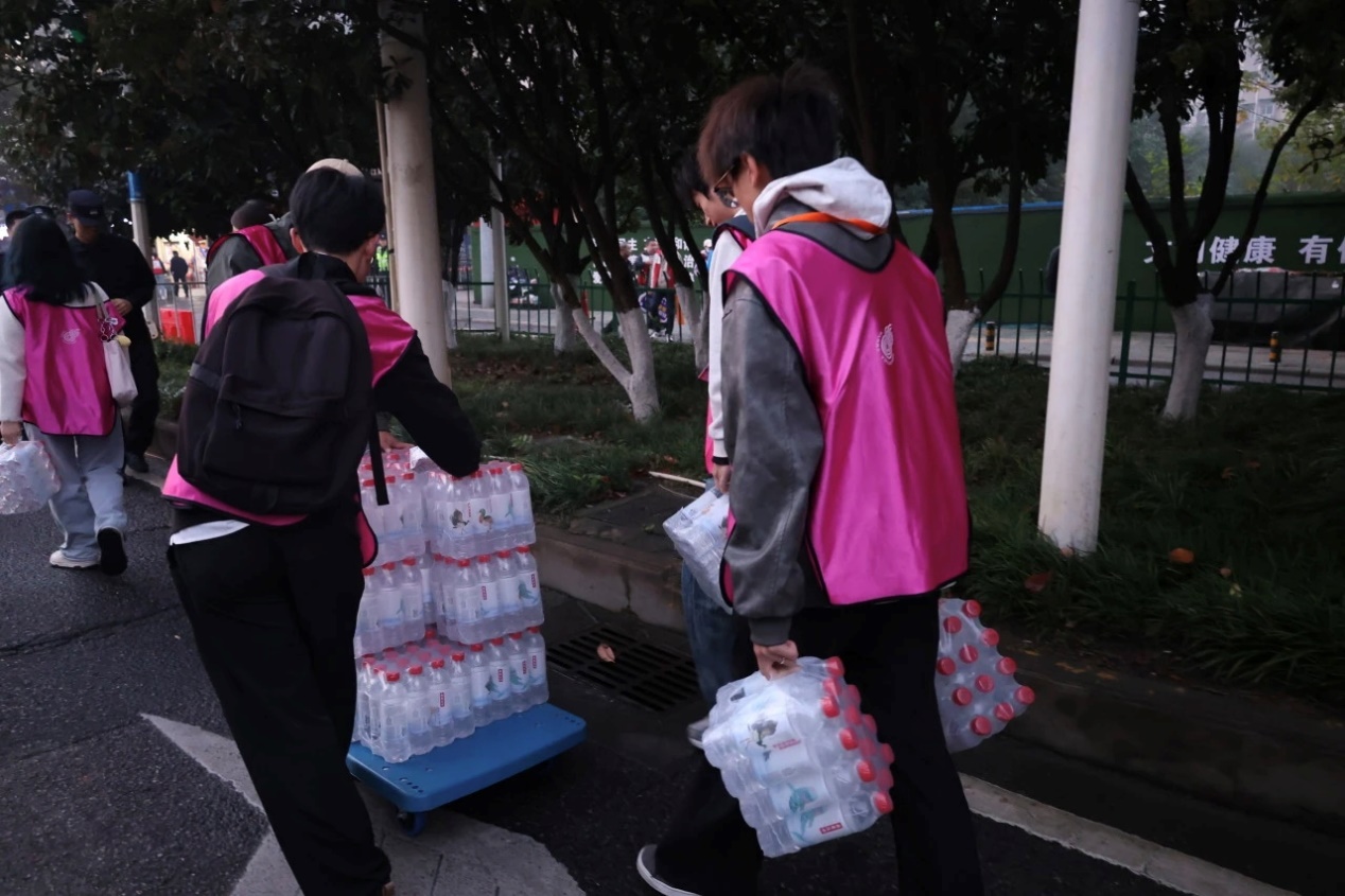 志愿者们在凌晨五点已集结完毕,顶着微凉的晨风布置补给点、整理物资,为选手们备好饮用水、能量食品与急救用品。