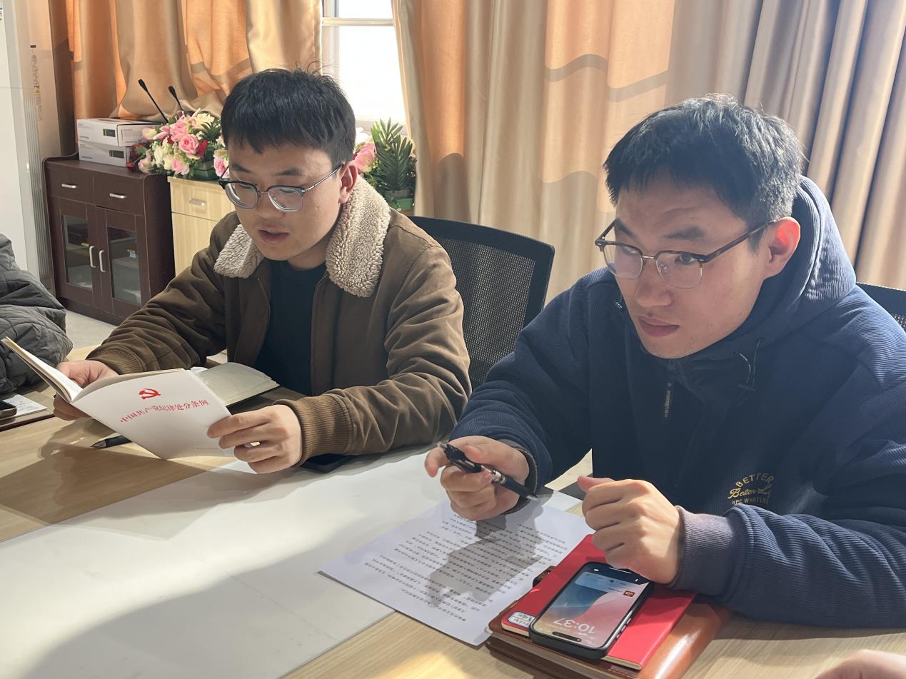 会议第二项,由袁野同志带领大家学习《中国共产党纪律处分条例》,由黄为同志领学诵读了党章第一章的有关内容。