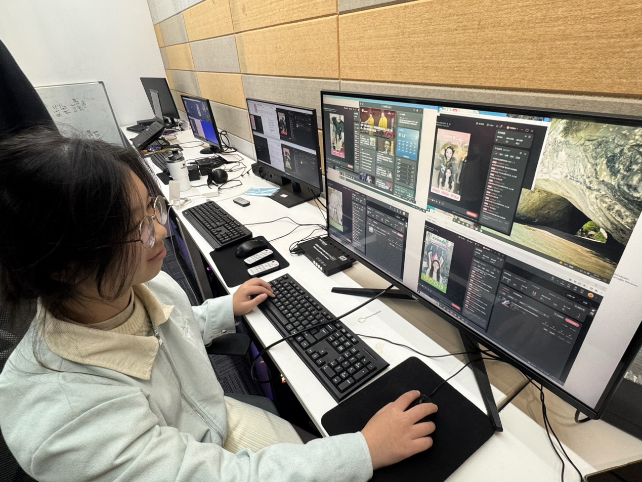 在公司AI直播基地,总经理侯佳佳现场演示今年双十一旗舰直播间"真人+数字人"无缝切换方案:通过自研情绪算法,数字人可在0.8秒内完成语气、表情与商品卖点的同步调整,实现24小时不间断直播,多国语言自如切换。学生们依次体验数字人实时驱动全流程,从脚本输入到多机位推流仅用时3分钟,直观感受AI技术对电商运营效率的提升。