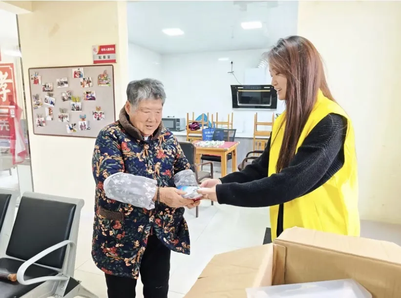 活动最后,实践队还为老人们送上了精心准备的爱心物资。一份份暖心的礼物承载着大学生的关怀,用实际行动将冬日的温暖实实在在地送到了长辈手中。