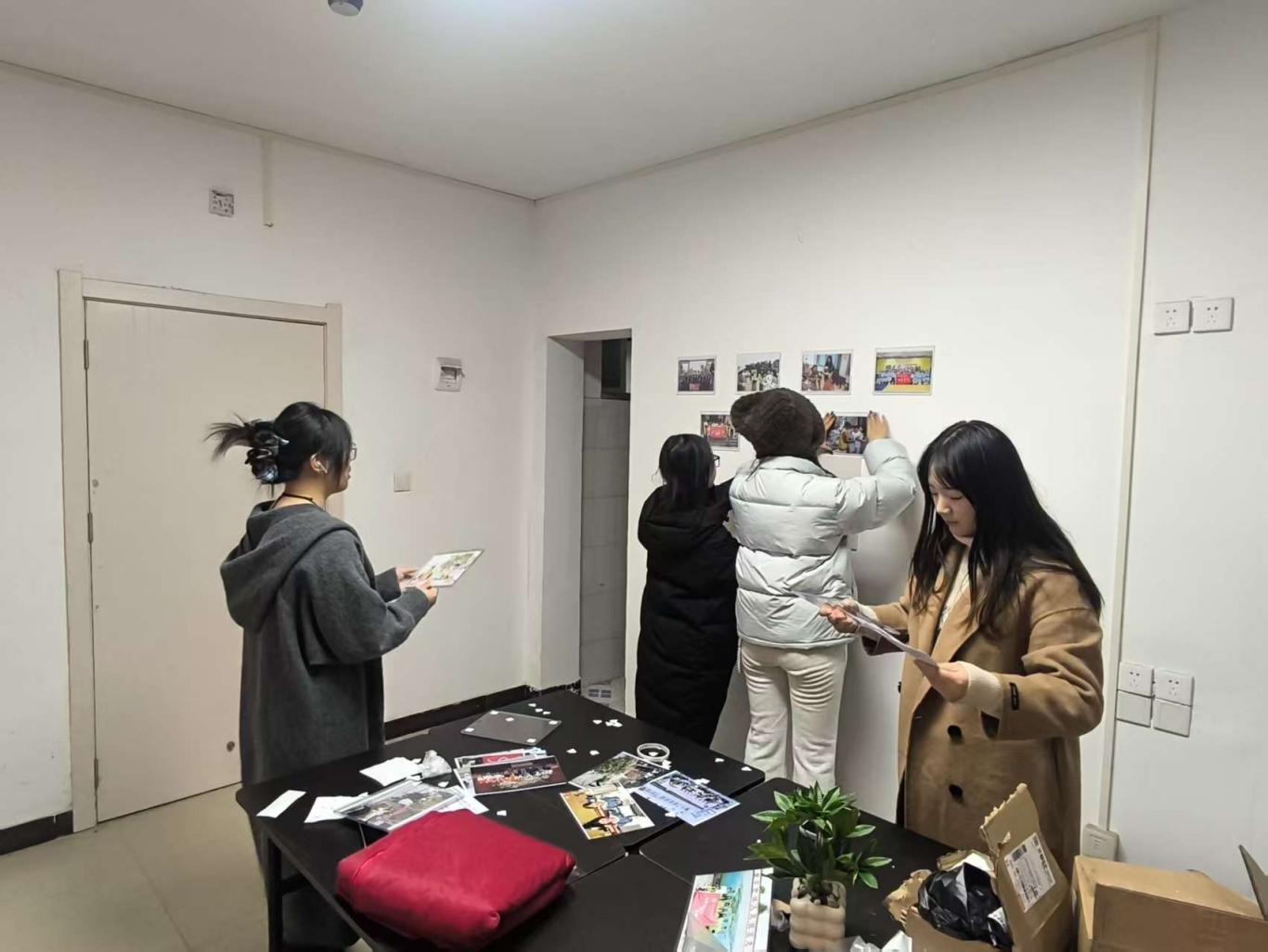 预备党员们分工协作、干劲满满,对六栋党团活动室进行全面清扫与精心布置,张贴宣传展板与党员活动照片。